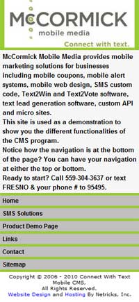 If you're going to have a presence on the internet a mobile website is a must. A mobile website serves up information better for your visitors that use mobile phones and handheld devices, making it easier to access and read. Your mobile website works side by side with your regular website. We install software into your website that detects how the visitor is accessing your website. If they access it with a mobile phone or handheld device the software then directs them to the mobile website.